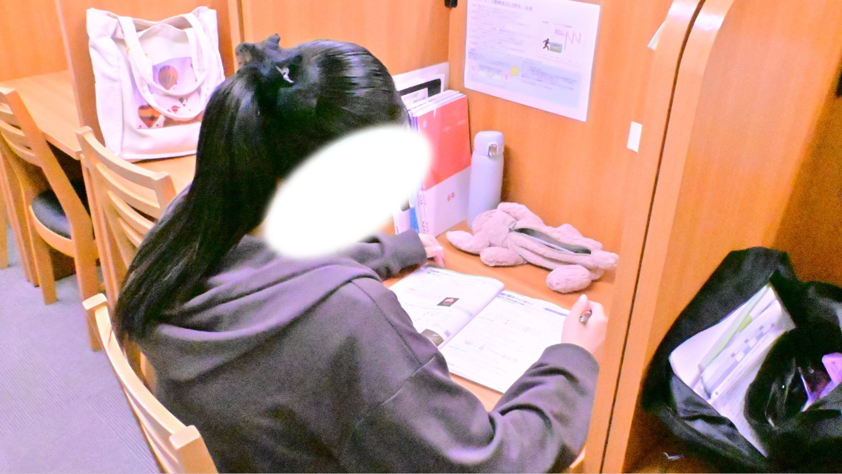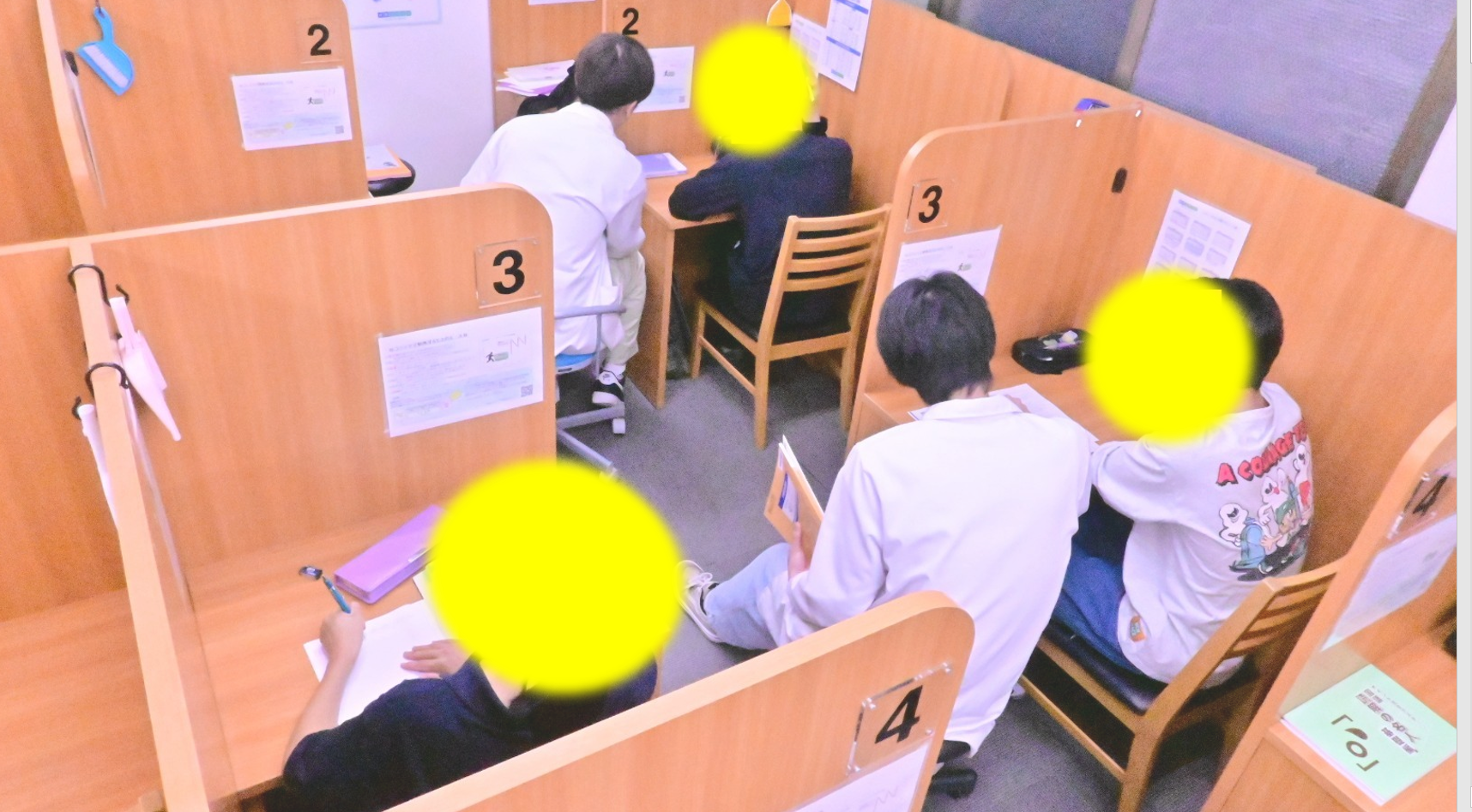 自習スペースも完備!コベッツの自習スペースは「半個室」で作られており、一人ひとりが集中して勉強できる環境を整えています。授業の無い日も自習している生徒が多いですよ。