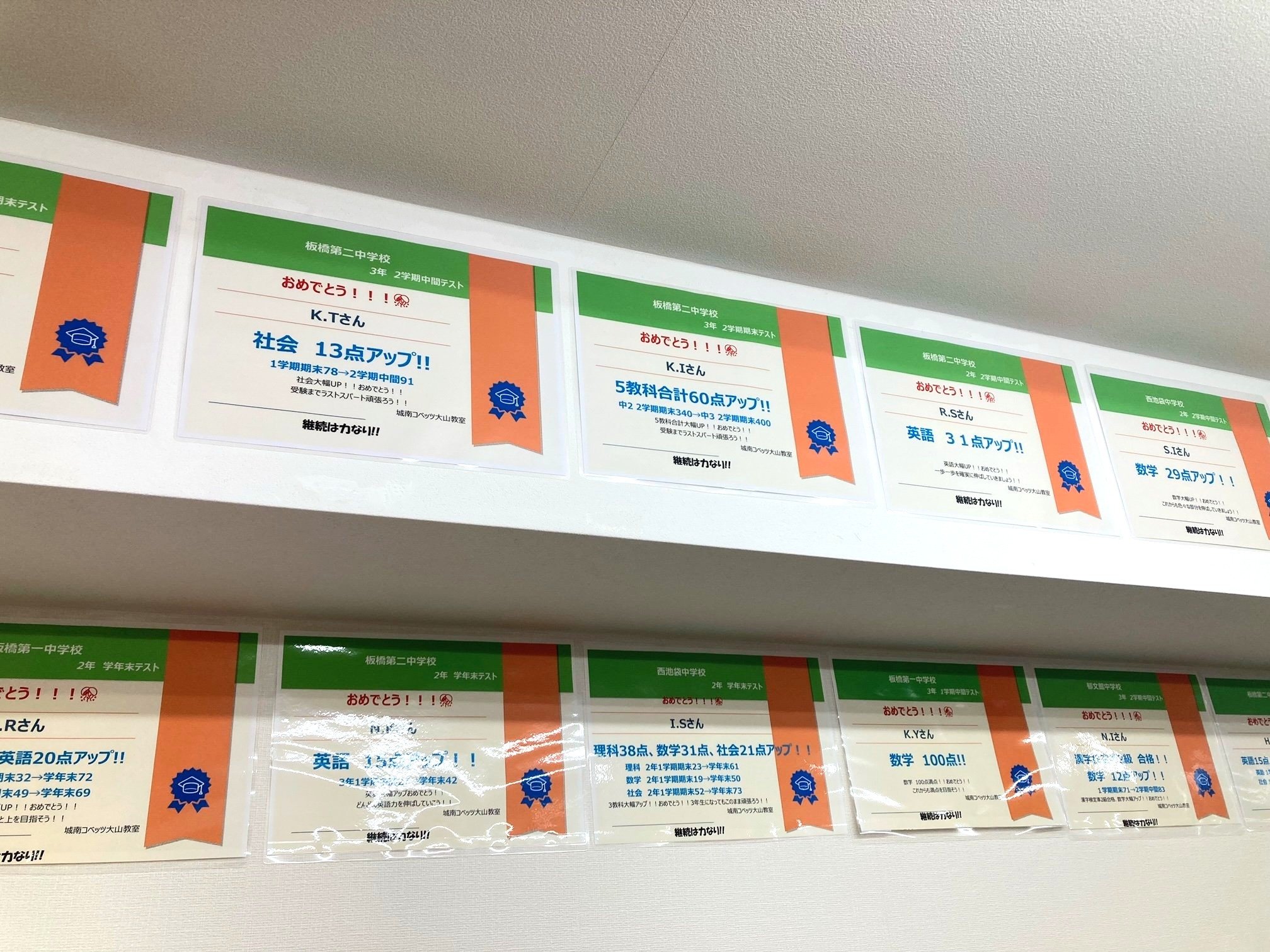 成績アップしています!うれしいですね。多くの生徒が点数UPを実現中!定期テストだけではなく模試や検定試験などでもすばらしい結果を出しています!